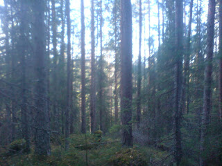 Efter ca 5 min promenad så kom vi ner mot en myr där en jösse hoppat men hunn verkade lagom road av spåren men ja tänkte att vi gör ett försök och släpp å se va som händer...efter ca 30 sek följande av spåret så vände hunn å kuta åt helt andra håll och sket totalt i den löpan...jaha tänkte jag, blir en sån där trög dag i skogen me mycke frisk luft bara då...