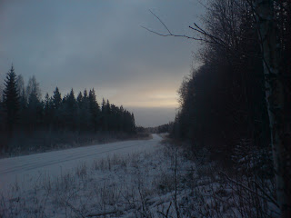 Matade mina små hundkräk och satte hurran på spisen, och sneglade lite försiktig mot termometern....-12 grader, Tja kunde ju vart - 20 så de va ju bra... gick med hundarna en sväng så dom skulle göra ifrån sig och sen ställde jag mig i ordning tills skjutsen kom, nya marker och stora förväntningar.